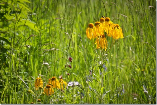While driving through the aspen forest, I spotted a chubby bird (perhaps my “birdlady” follower Judy can identify it properly, but it appeared to be a grouse of some kind I believe). It crossed the road and scampered up the hillside next to me and then began hollering quite loudly.