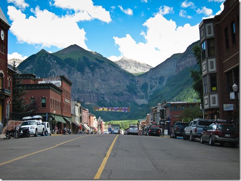We then, finally, headed into the town of Telluride. I had last been here a few years ago in the Fall when the aspens made the surrounding mountains truly spectacular. But summer scenery here was not too shabby either… 2 large waterfalls are a prime feature. One has a pumphouse that serves as the town’s main water supply.