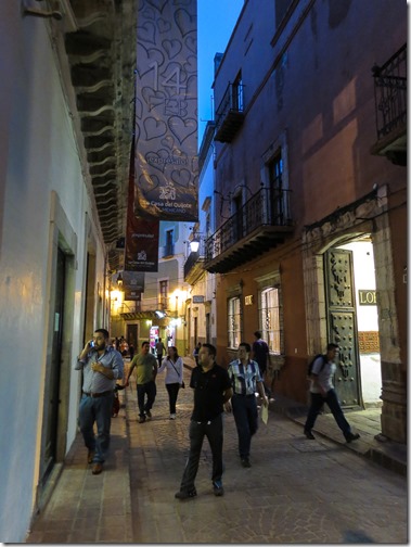 Undoubtedly, the most famous of Guanajuato’s callejones is the “Callejon de Beso” (the Alley of the Kiss). Click the link for the full story of the legend, but suffice to say, this callejon is so narrow that it once allowed Guanajuato’s Romeo and Juliet to share a final kiss from their balconies. Today, it’s a popular tourist stop…VERY popular! But after trying a few more times, I finally was able to snap a shot with no people in it!